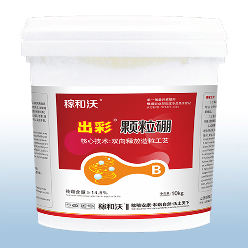 出彩硼是根据中国土壤硼素吸收特点,由水溶性硼采用双向释放造粒工艺精制而成,具有营养快速释放与缓慢释放相结合的特点,溶解速度有快有慢,易被作物均衡吸收;分散性优良、不易造成作物硼中毒;颗粒整齐,易与复混肥混合施用。本品能促进花芽形成,增花,增蕾、增穗,使果实子粒更饱满,缓解作物因缺硼引起的花而不实,实而不果,落花落蕾等生理现象。