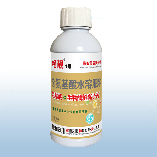 本品是根据果实在座果后生长、生理特点及营养需求特点研制成功的功能型营养调理剂。它以多种氨基酸为载体,科学螯合生化钙,具有活性高、吸收快、传导好、沉积强的特点。使用后,上市早、耐贮运,并能预防果实因缺素引起的日烧、苦痘、裂果、脐腐、锈斑、软腐、干烧心、霉心等不良现象,提高果品的品质和产量。